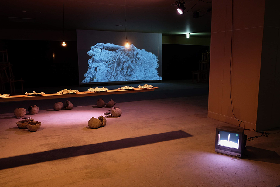 It consists of eight single-channel videos, four types of sound, and two groups of objects.installation view